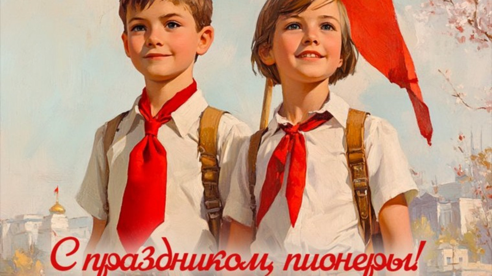 С праздником всех, кто сохранил в себе пионерский дух, помнит свое пионерское детство и не забывает о красном галстуке как о символе юности и отваги. Идите вперёд, добивайтесь задуманного, побеждайте, помогайте ближнему и оставайтесь настоящими героями. Будьте примером в борьбе и труде!
