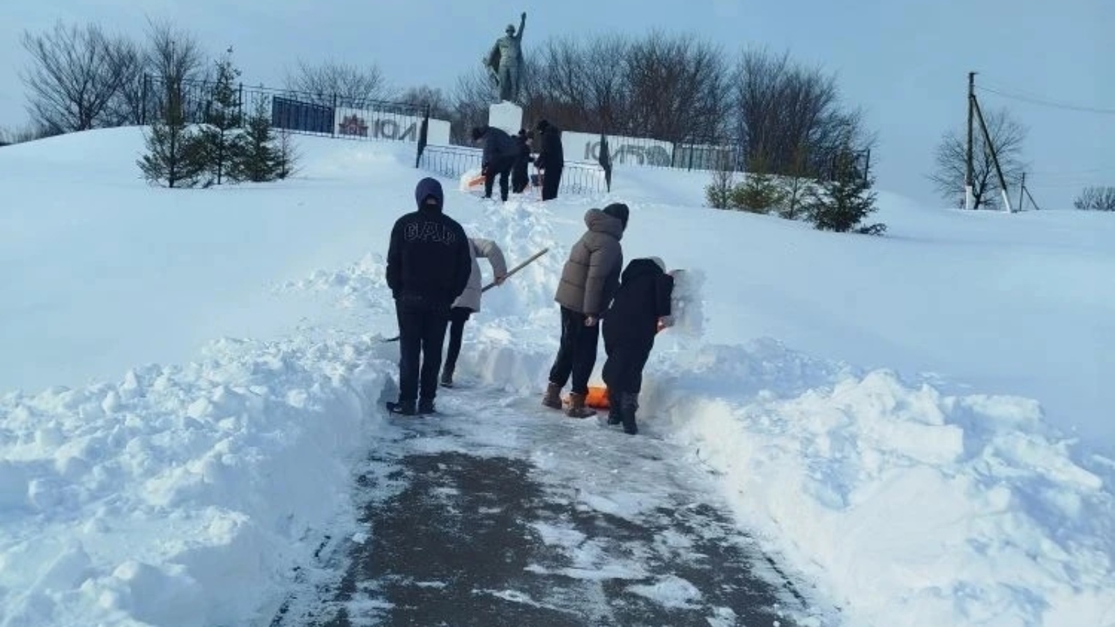 В рамках месячника гражданско-патриотического воспитания ученики Нижнечекурской сош после прошедшего снегопада организовали уборку у памятника воинам-землякам, погибшим в годы Великой Отечественной войны. Ребята расчистили дорожку к памятнику, убирали снег на площадке